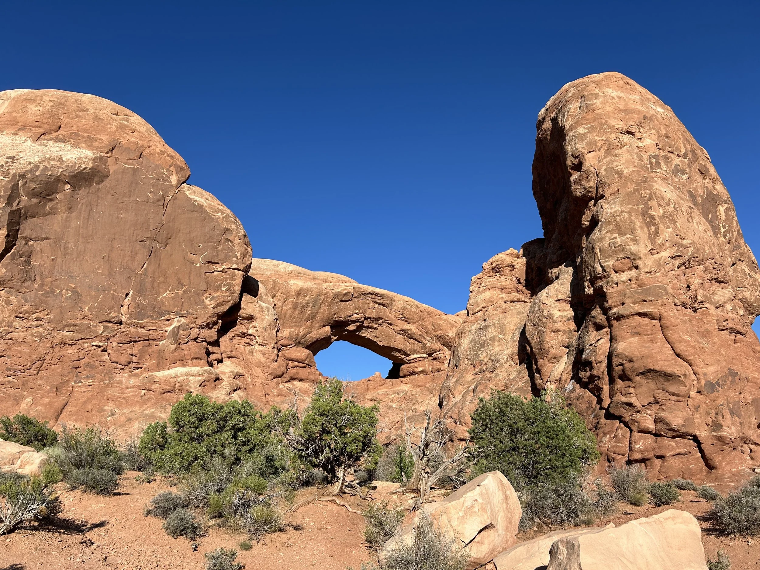 The massive Double Arch. Look for the tiny people on the rocks underneath.