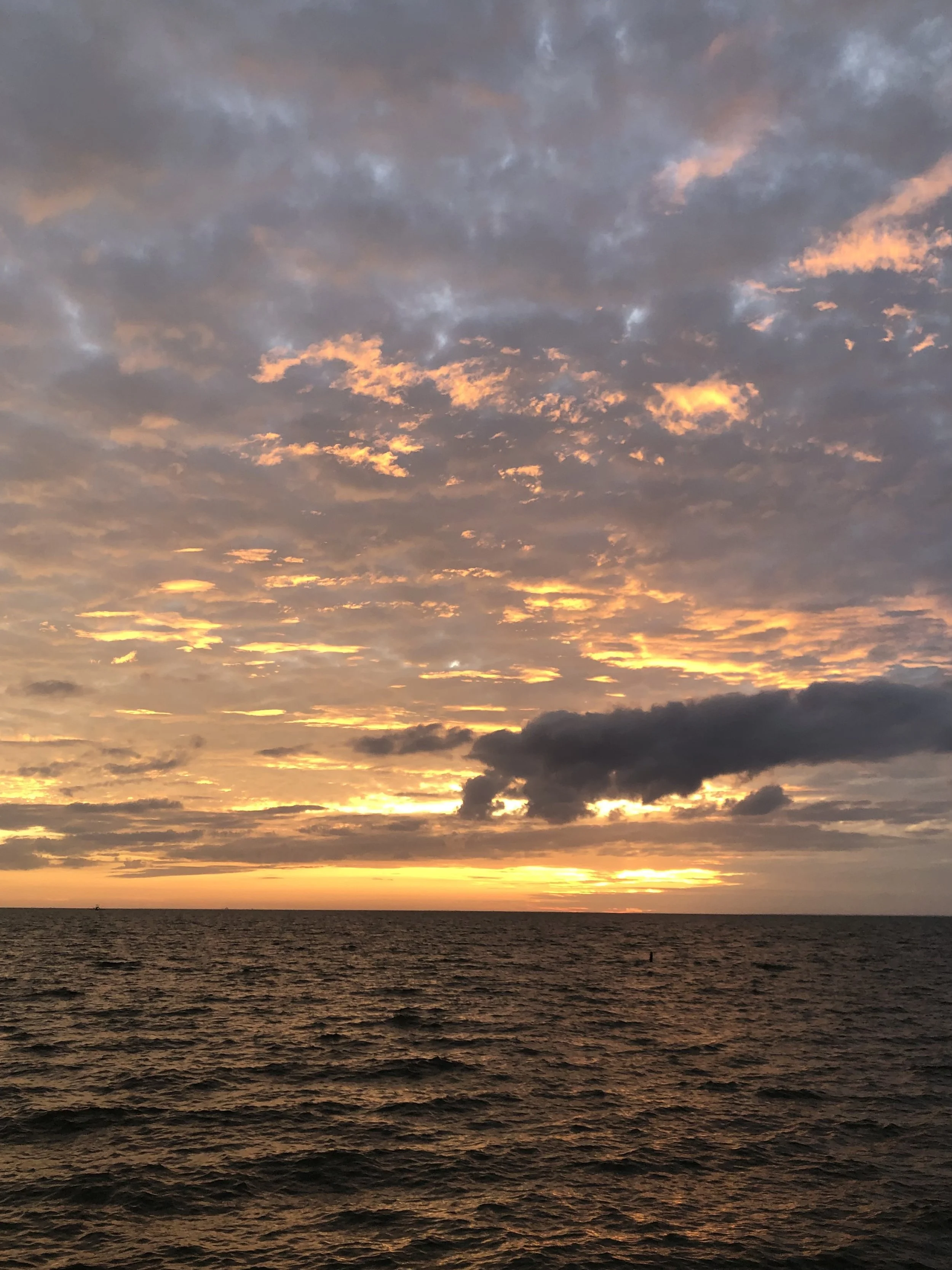 On this visit at Martha and Paul’s house, we were treated to a spectacular show in the sky over the water, a sunset that seemed to go on and on, as evidenced by all the photos we took. I’m going to share just a few of them below.