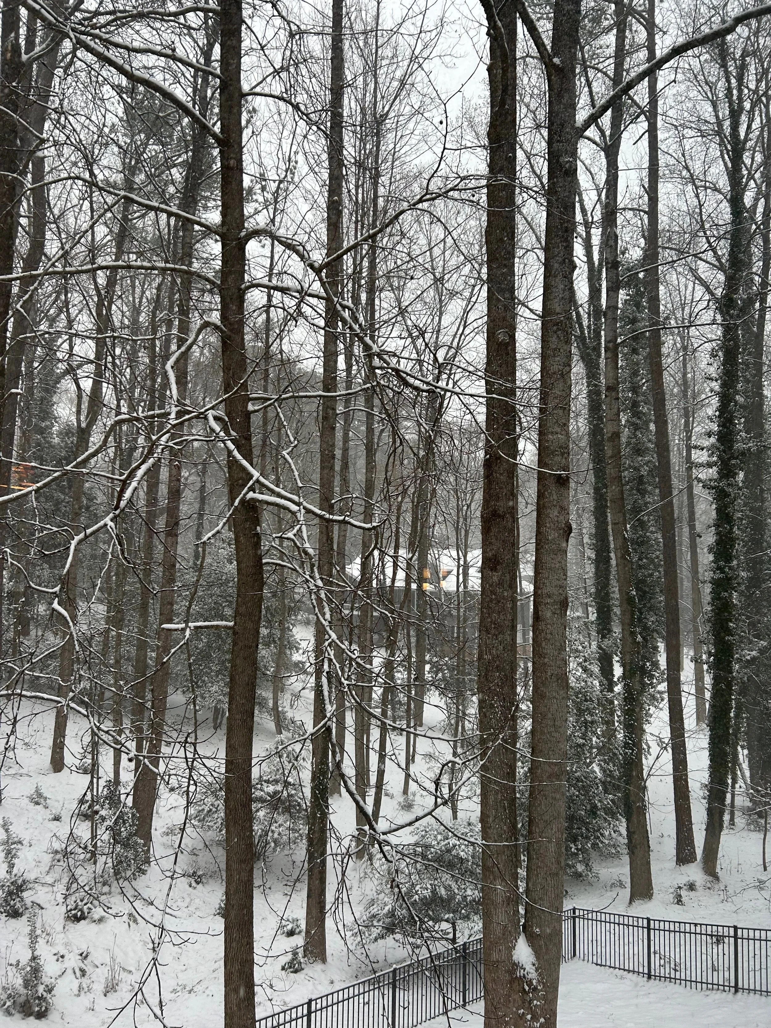 Sunday morning, after Friday’s snowfall. Note the ice coating the trees.