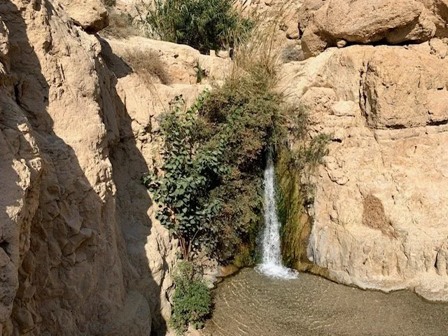 “This is a waterfall in the area where the future King David hid from King Saul. So many Psalms came to mind. The photo seems innocuous,” she explains, “but the surrounding desert made the water an oasis.”