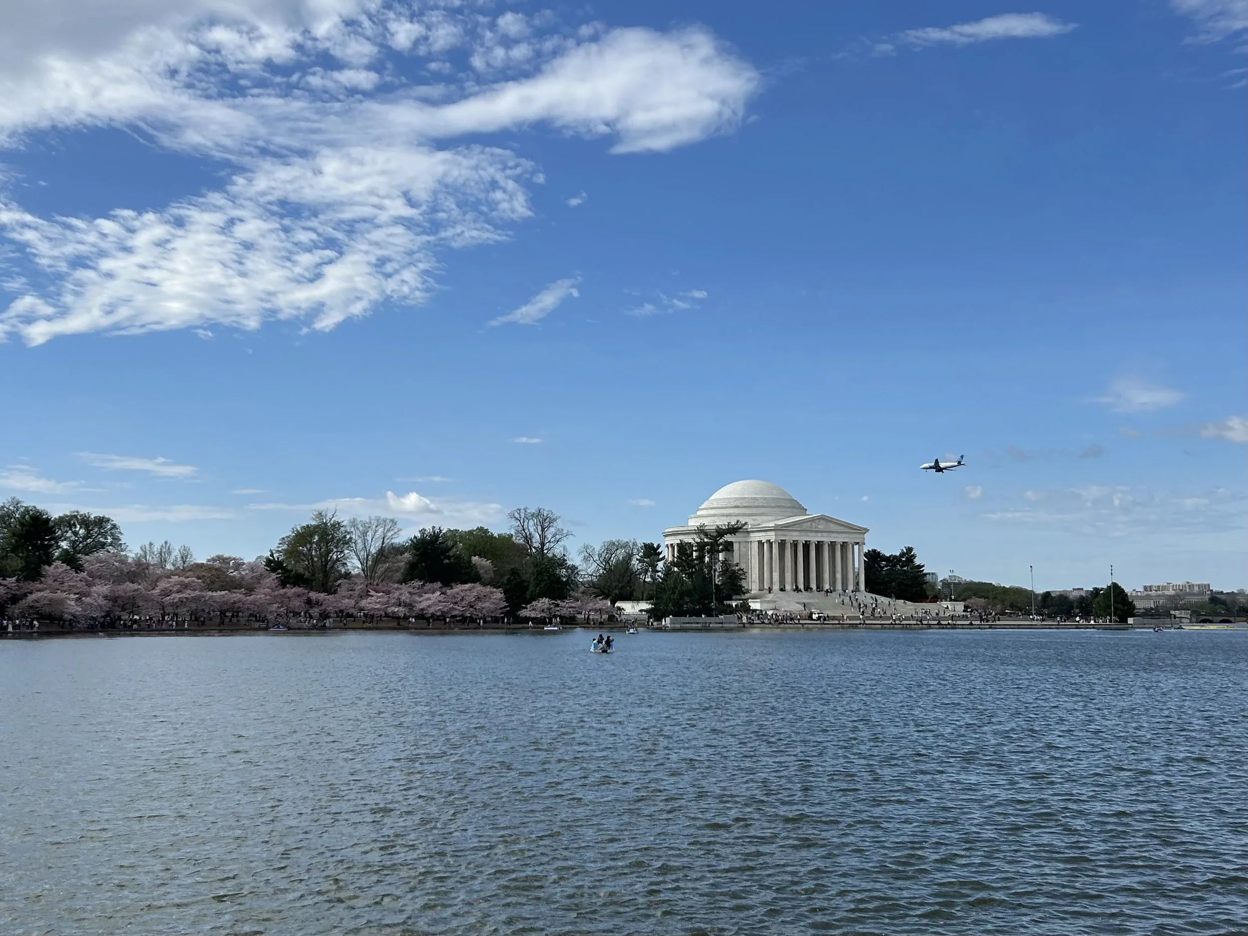 As we walked to the left in the park, we could see the Jefferson Memorial across the water. Paddle boats with intrepid pedalers dotted the water as planes flew overhead.