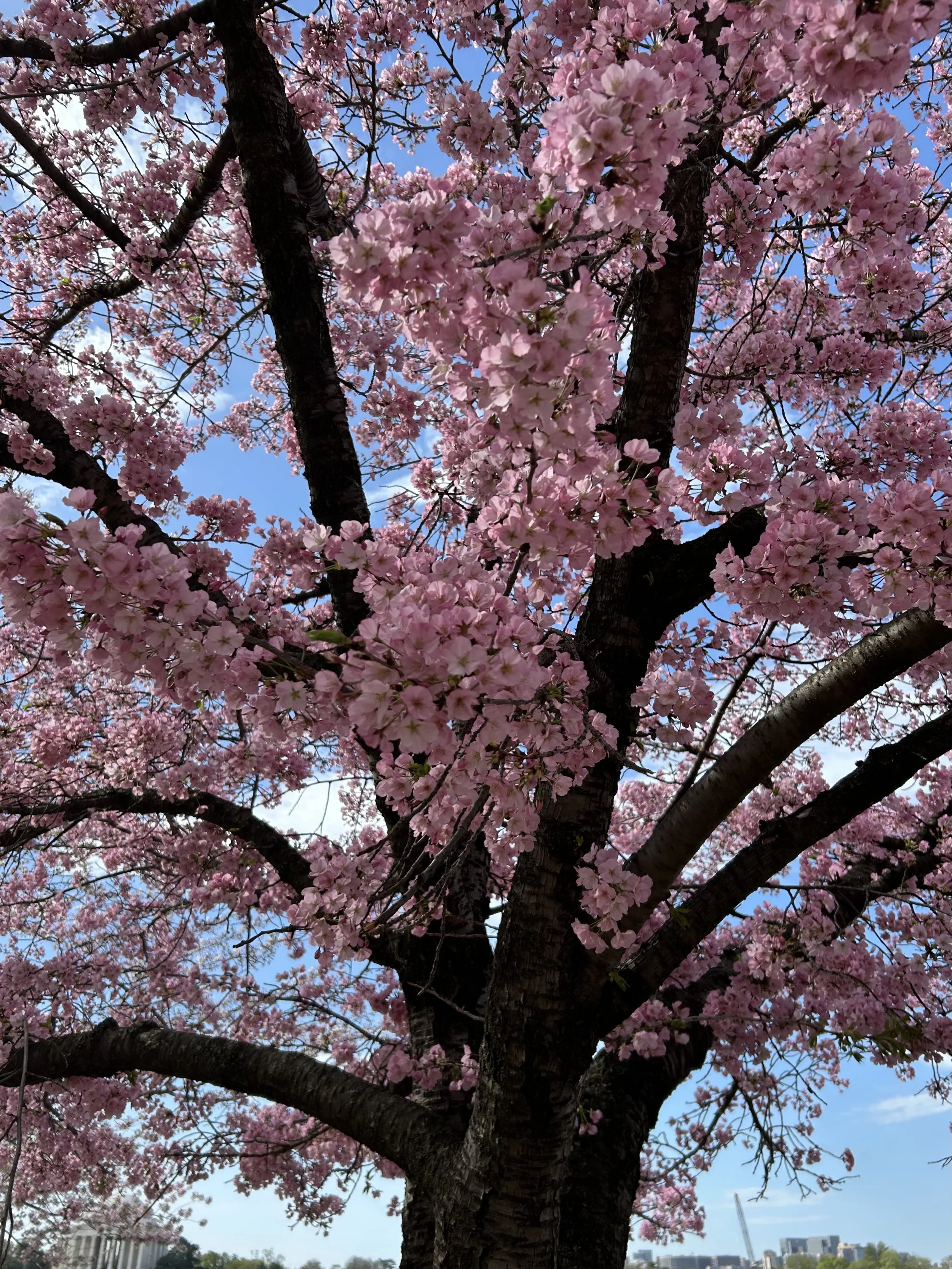 As we made our way along the line of cars—Isaac our driver grumbling under his breath—we saw scores of people walking, running, and playing in the park along the water. Riding over the bridge, we caught a glimpse of some trees in the distance, every one of them dressed in pink.