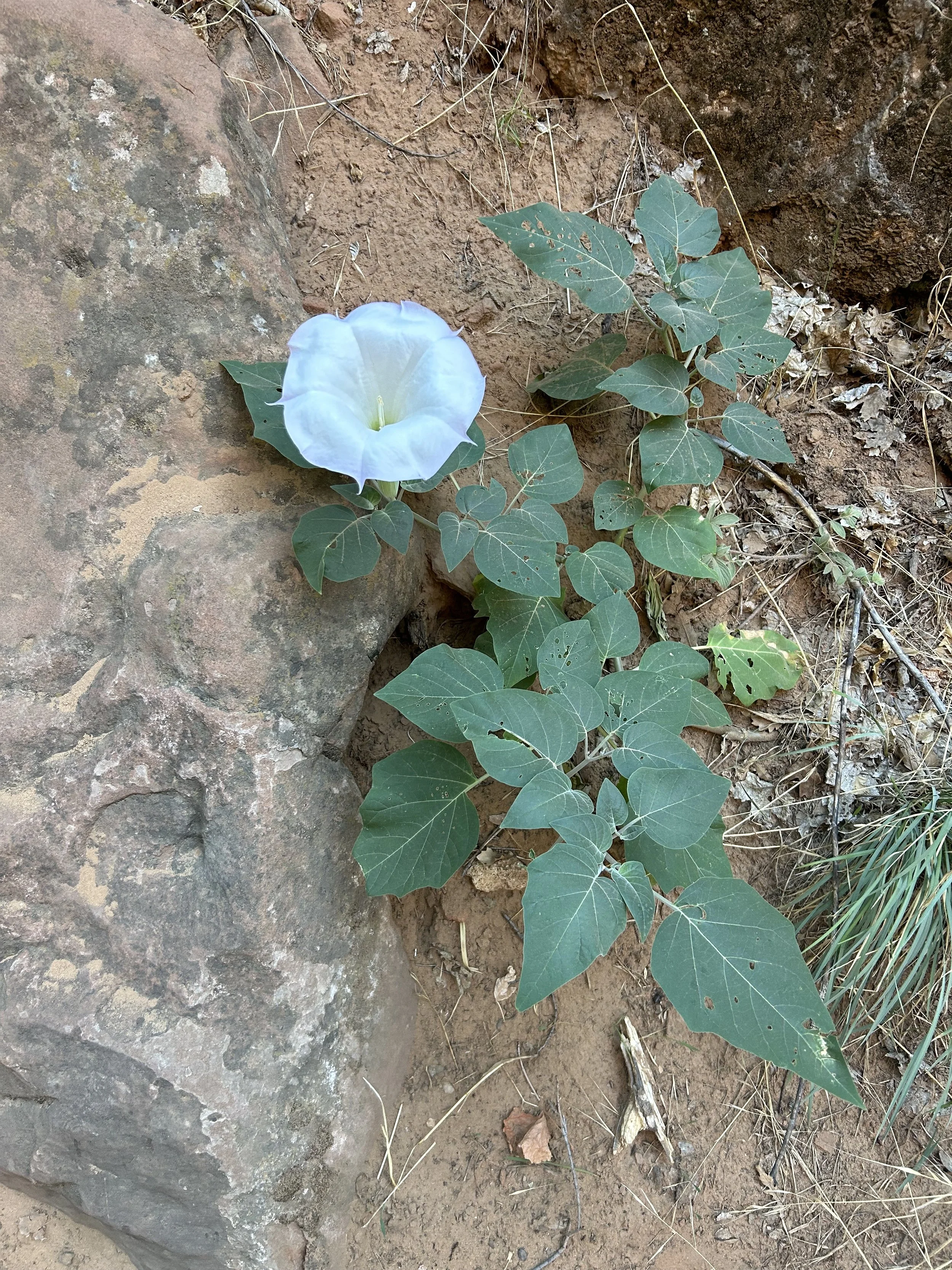 There were lots of trees and flowers along the way. We came upon a white flower here and there, which we had also noticed growing in our rental house’s neighborhood. I looked it up and found out that it’s called sacred thorn-apple. A beautiful bloom, its milky white petals seem to signify innocence and purity as white typically does in the language of flowers, but that’s just an illusion—it’s poisonous. In fact, the entire plant is poisonous if ingested, and just touching it should be done wearing gloves. Beauty, yes, but a dangerous and even deadly one.