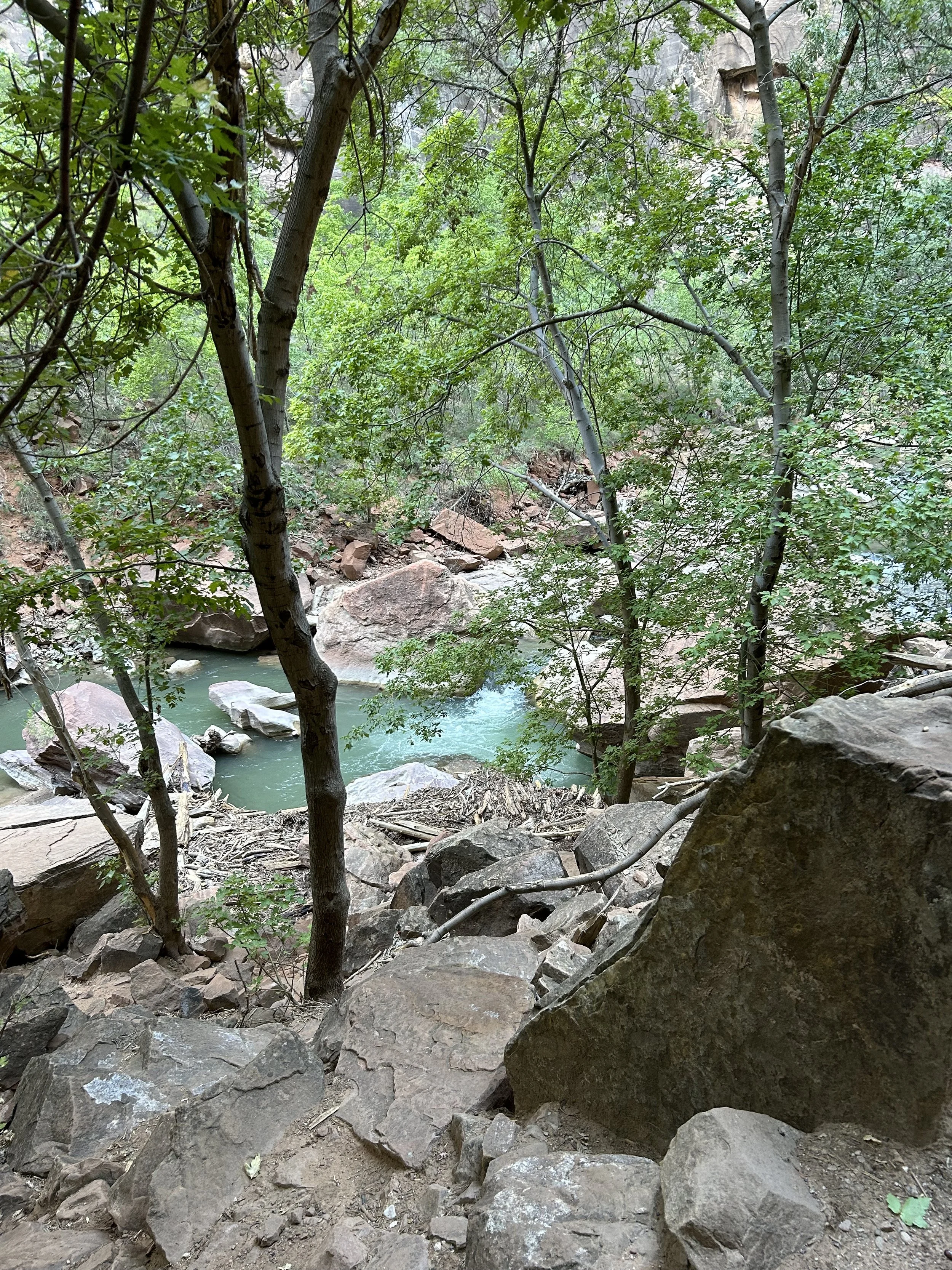 We also watched people wade to the other side of the river and enter the slot in the canyon leading to the Narrows.
