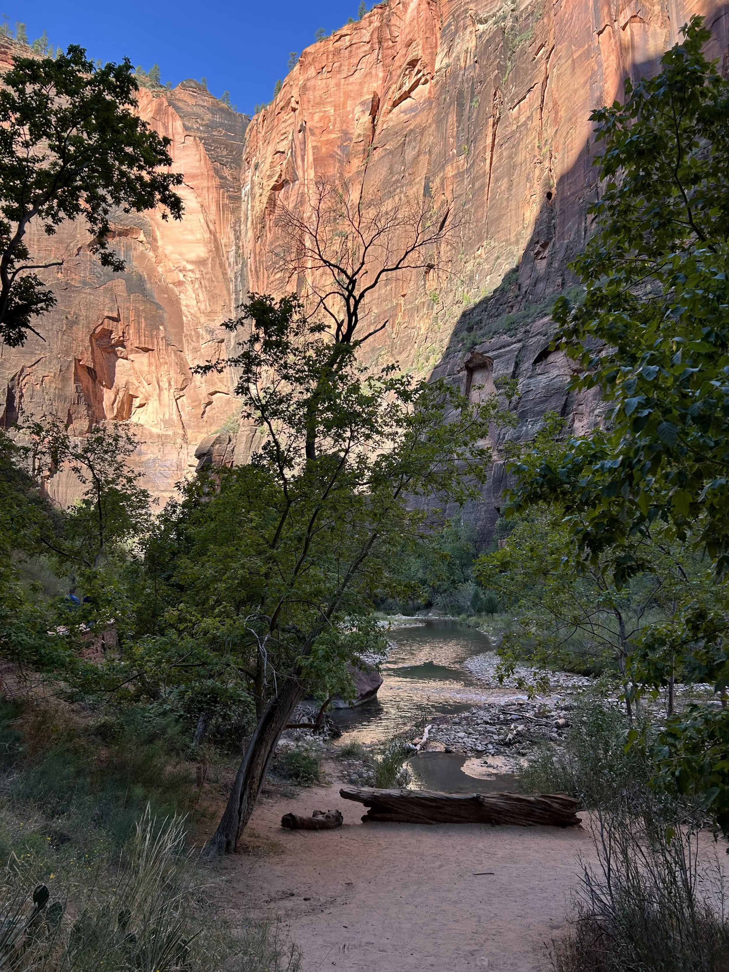 With its deep and narrow gorge created by the Virgin River, Zion Canyon has towering walls of sandstone in shades of red, pink, and cream. The canyon is flat with a paved path along the river, which is the area that we enjoyed on our visit. The park also offers rock-climbing, canyoneering, camping, biking, and much more. (Keep in mind that some activities require permits.) But since we are not serious hikers, we didn’t need permits for anything.